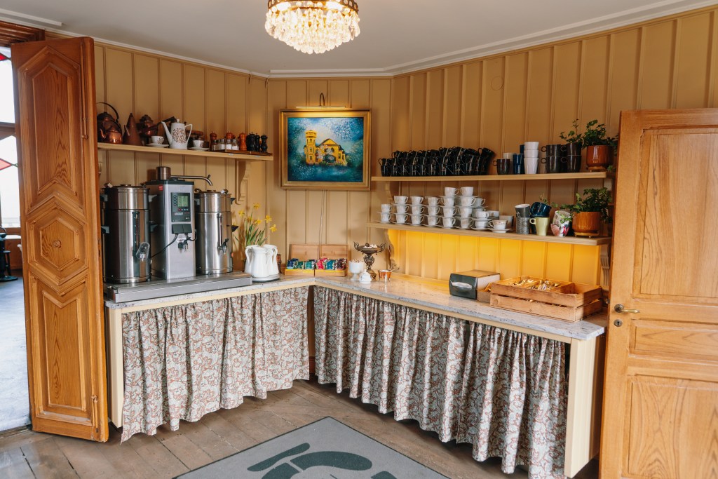Njut av fika, lunch och något gott i glaset i våra salonger eller i trädgården med utsikt över vattnet.